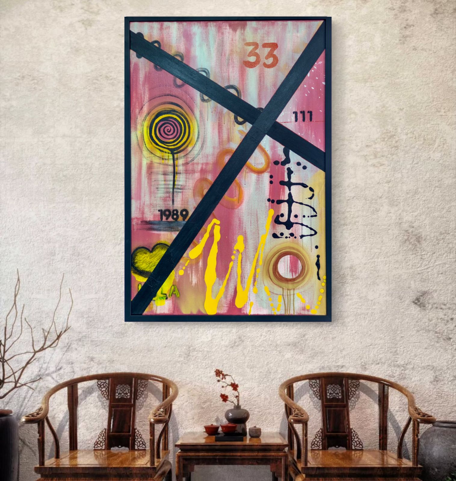 Parábola funciona como un portal. Un cruce entre planos donde lo biográfico, lo espiritual y lo simbólico se superponen sin explicarse del todo. El 33 señala un tiempo fuera del tiempo, asociado a la resurrección como tránsito y no como fe. El 111 actúa como código de manifestación, inicio y alineación, un estado donde pensamiento y realidad se tocan. La fecha 1·11·1989 no narra un pasado, marca un punto de entrada. La cruz negra no niega, atraviesa. La obra no describe un camino, lo abre.